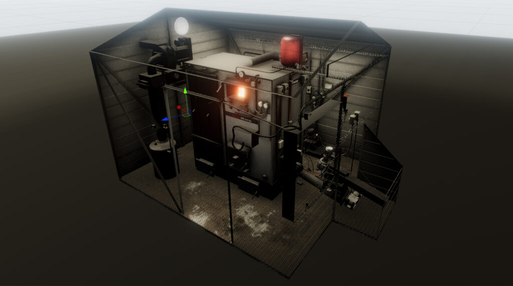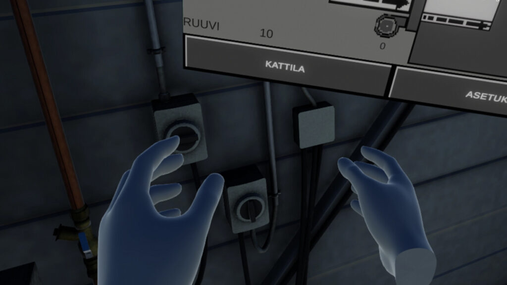 The virtual heating container demonstrates a real-life problem situation with thermal power, in which case a portable heating container is brought on the scene to produce heat. The user of the virtual demonstration can move around in the boiler room and adjust the temperature and other values of the boiler with virtual reality controllers.